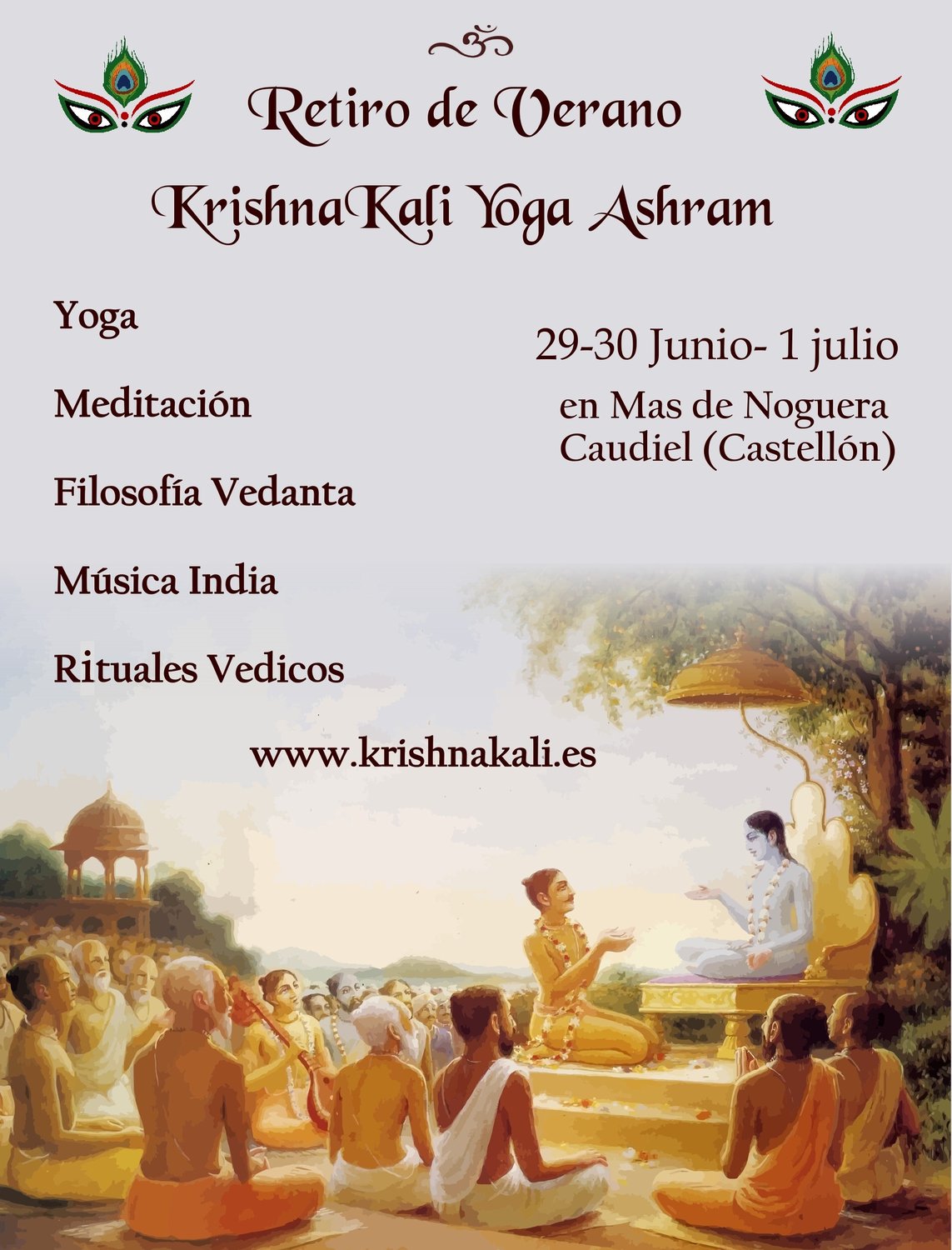 El fin de semana del 28-29-30 de Junio, la formación de Yoga y Filosofía Vedanta KrishnaKali Yoga Ashram llevará a cabo su retiro anual de verano. Este año será alojado en La Torre de los Frailes, un espacio rural en Teruel, a escasa hora y media de Valencia, donde los alumnos disfrutarán de aire puro, un entorno rural y comida vegana y orgánica. Durante el retiro los alumnos tendrán clases de asanas y pranayama, además de dos clases teóricas, rituales védicos, cantos devocionales y...