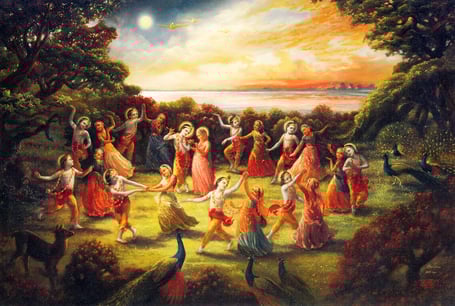 ¿Puede haber un dejo de pasión en el Señor? ¿No era acaso un niño de siete años en la época del Rasa Lila? ¿Quién puede comprender el secreto del Rasa Lila y el Madhurya Bhava, la culminación de la forma superior de Bhakti, Atmanivedana o la entrega total al Señor? Solamente Narada, Shuka Deva, Chaitanya, Mira, Ramananda o las gopis podían comprender el secreto del Rasa Lila. ¿No Se multiplicó acaso en incontables Krishnas? ¿Puede un ser humano llevar a cabo semejante acto milagroso?